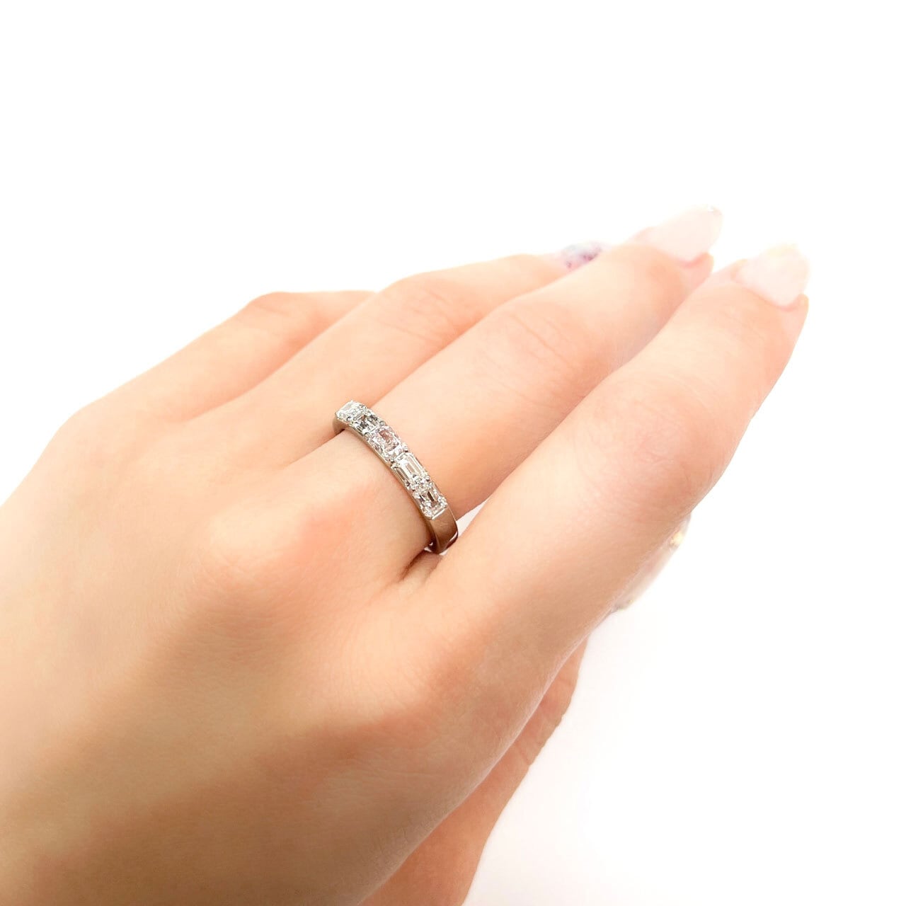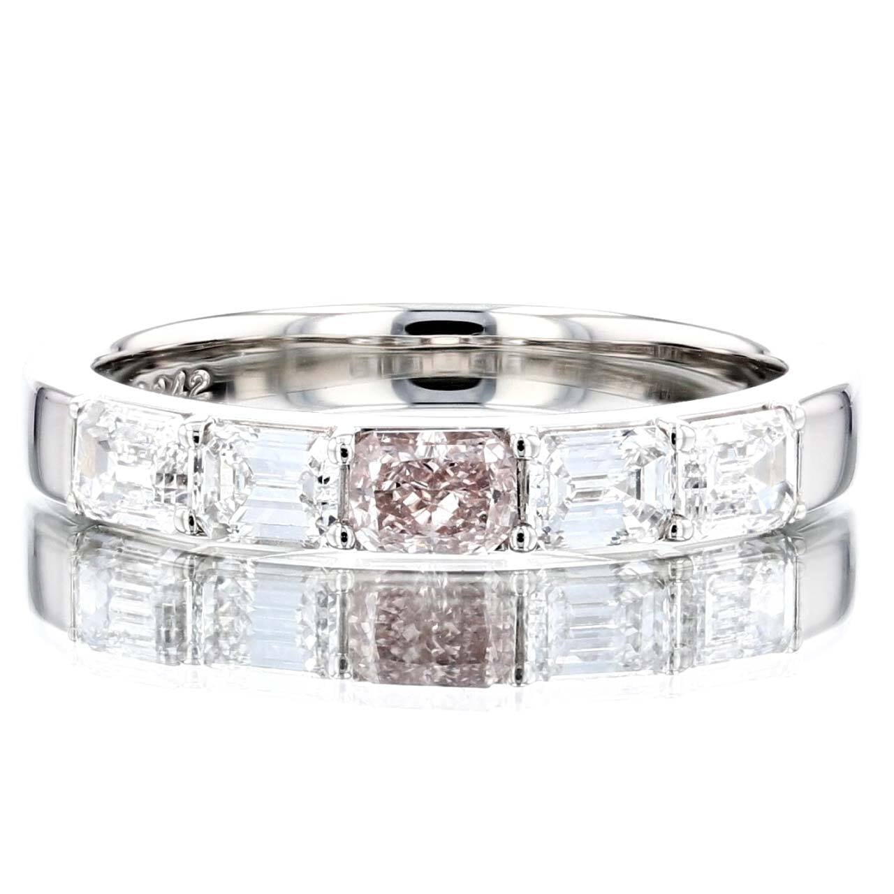 包み込むような優しい包容力のあるピンクダイヤモンド。プラチナをしっかりと使用した幅のある太みのアームが、デザインの美しいバランスを引き立たせます。