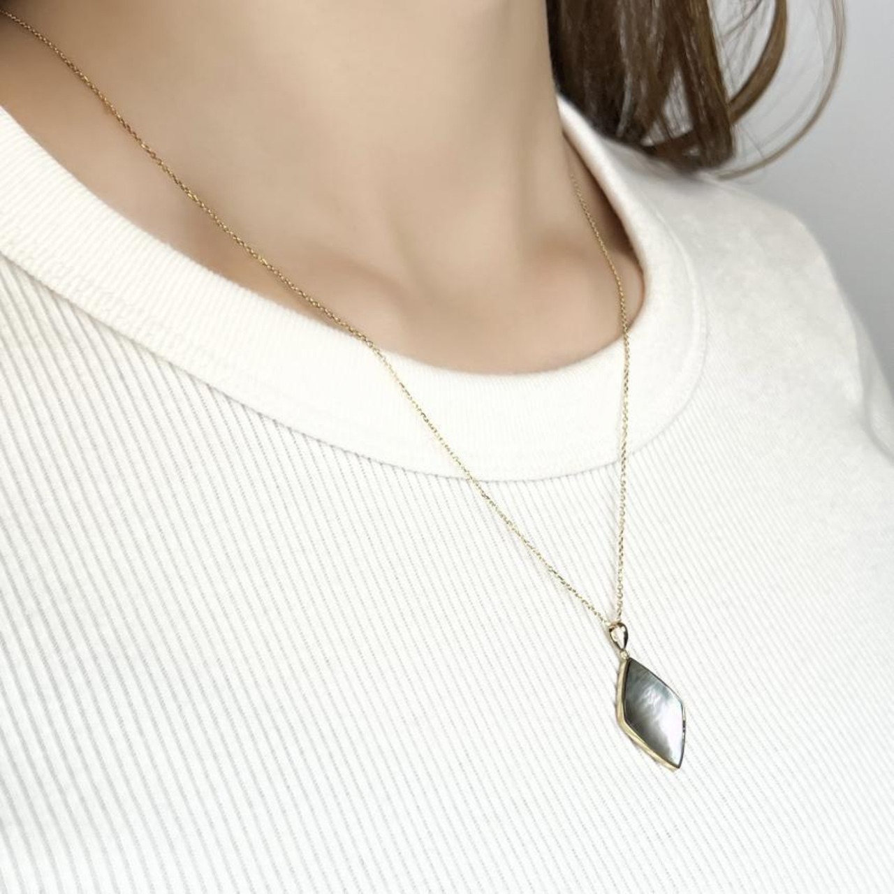 黒蝶貝をベースにミンサー模様を刻印したネックレス