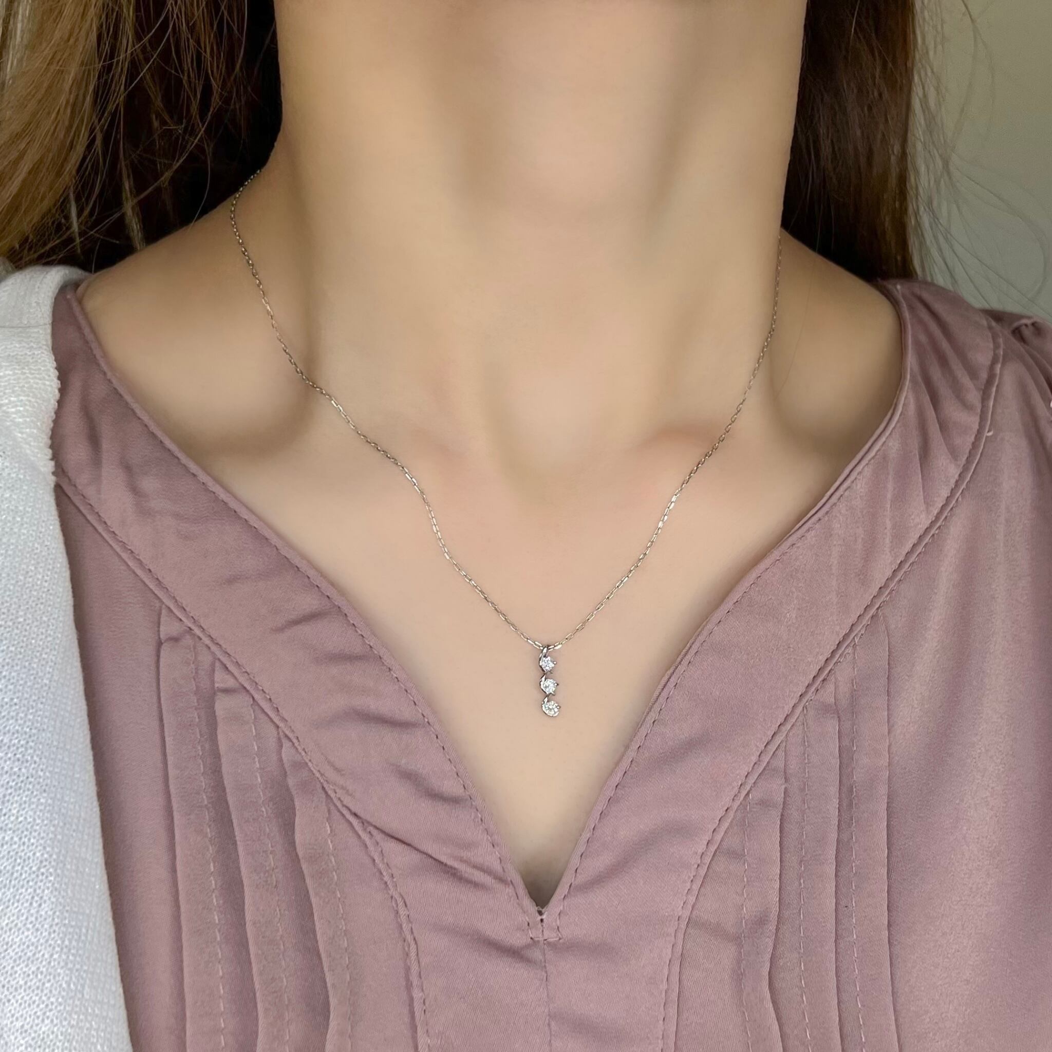 3石の輝くダイヤモンドが特別なネックレス