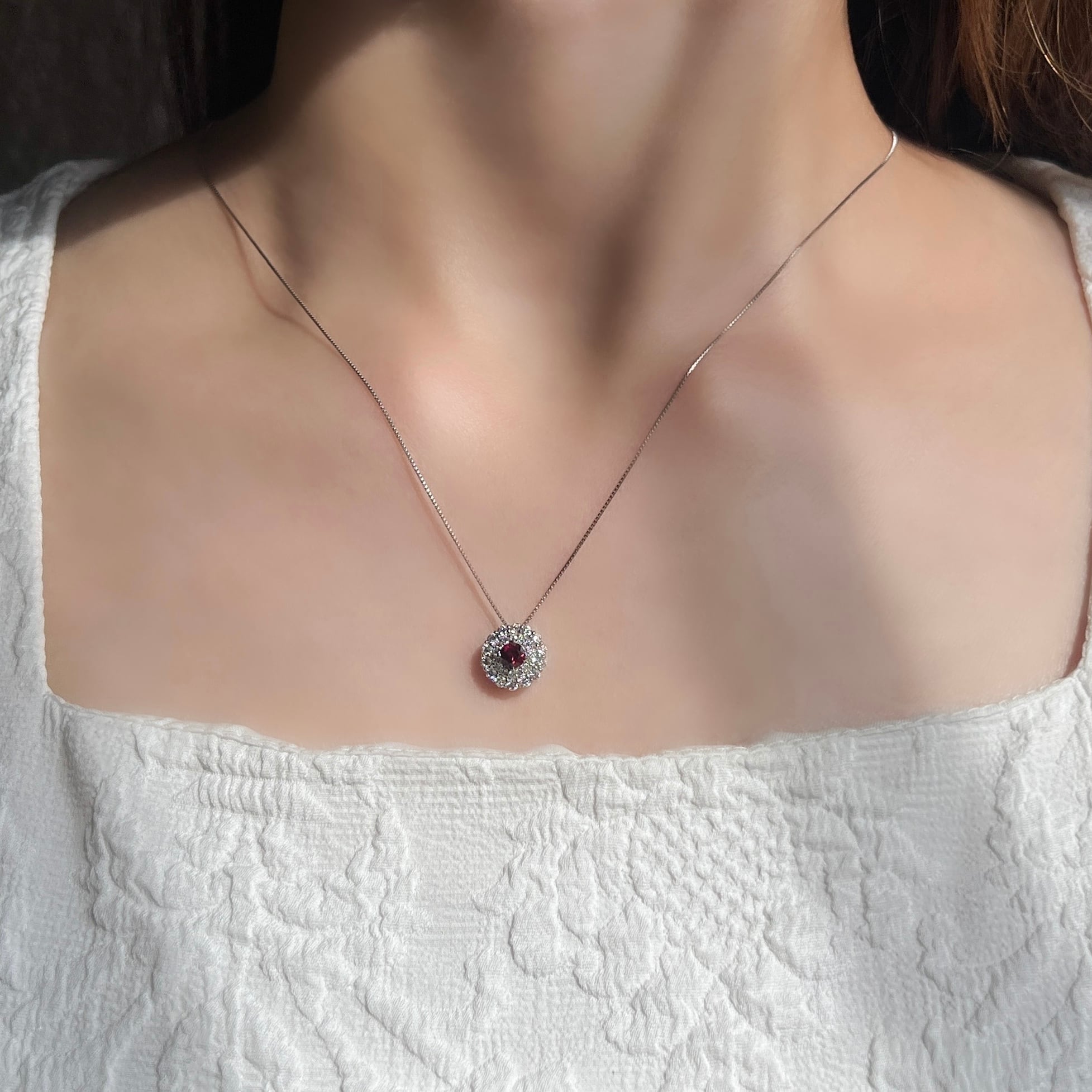 極上の「ピジョンブラッドルビー」を中央にセッティングしたプラチナネックレス