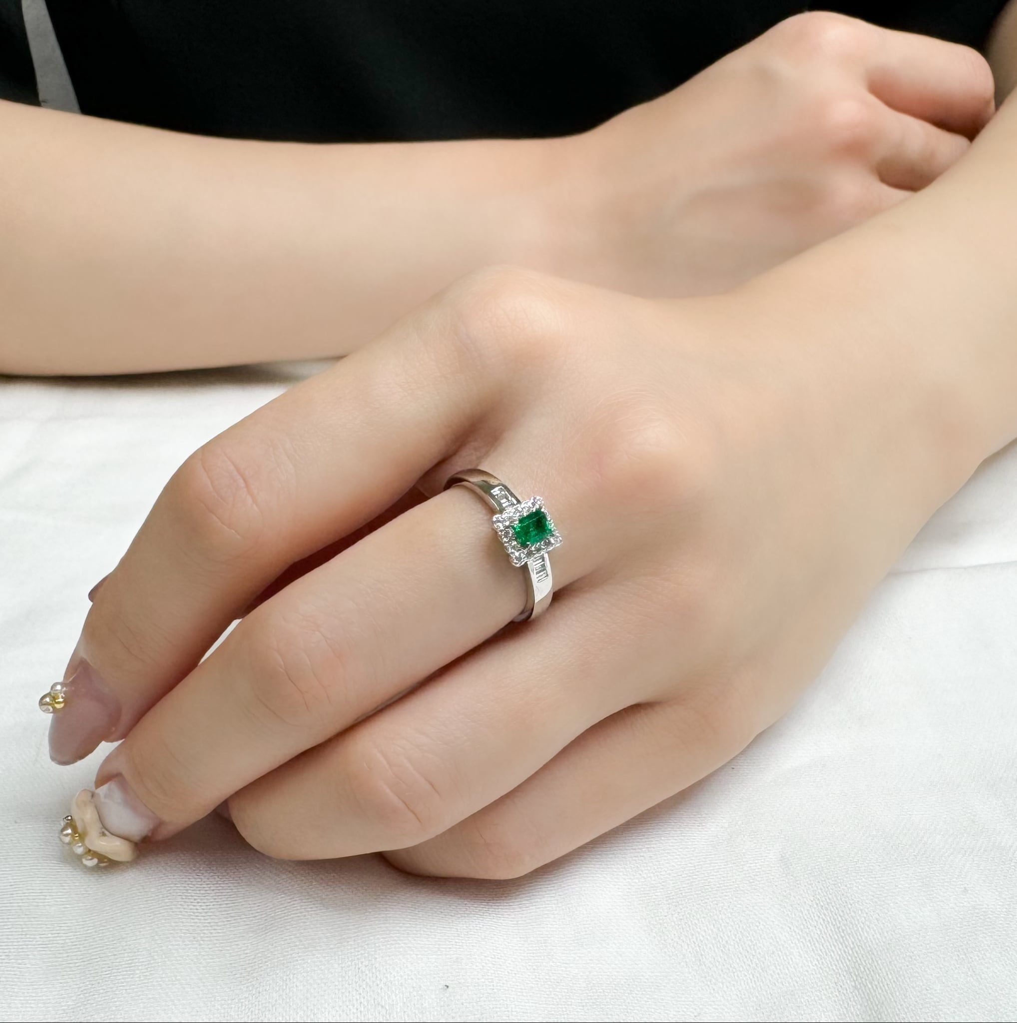 美しいエメラルドのグリーンがひと際目を引く上品なリング