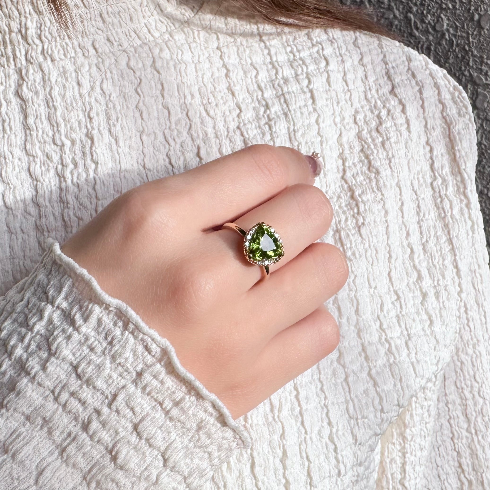 8月の誕生石ペリドットが織りなす美しいリング