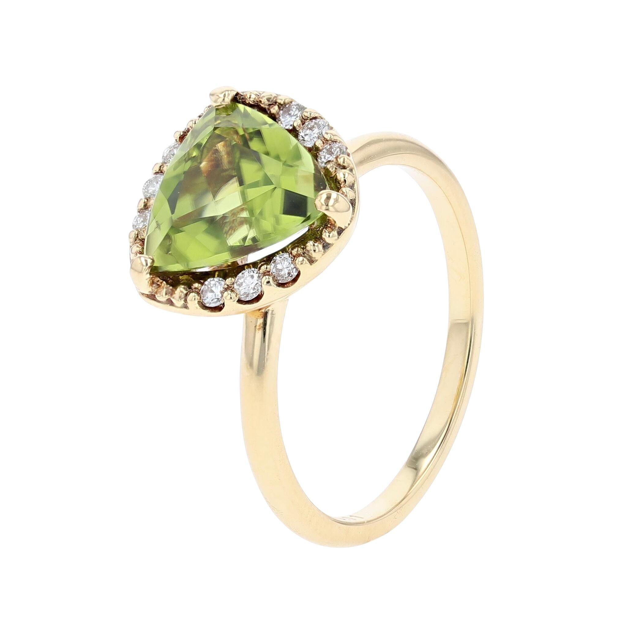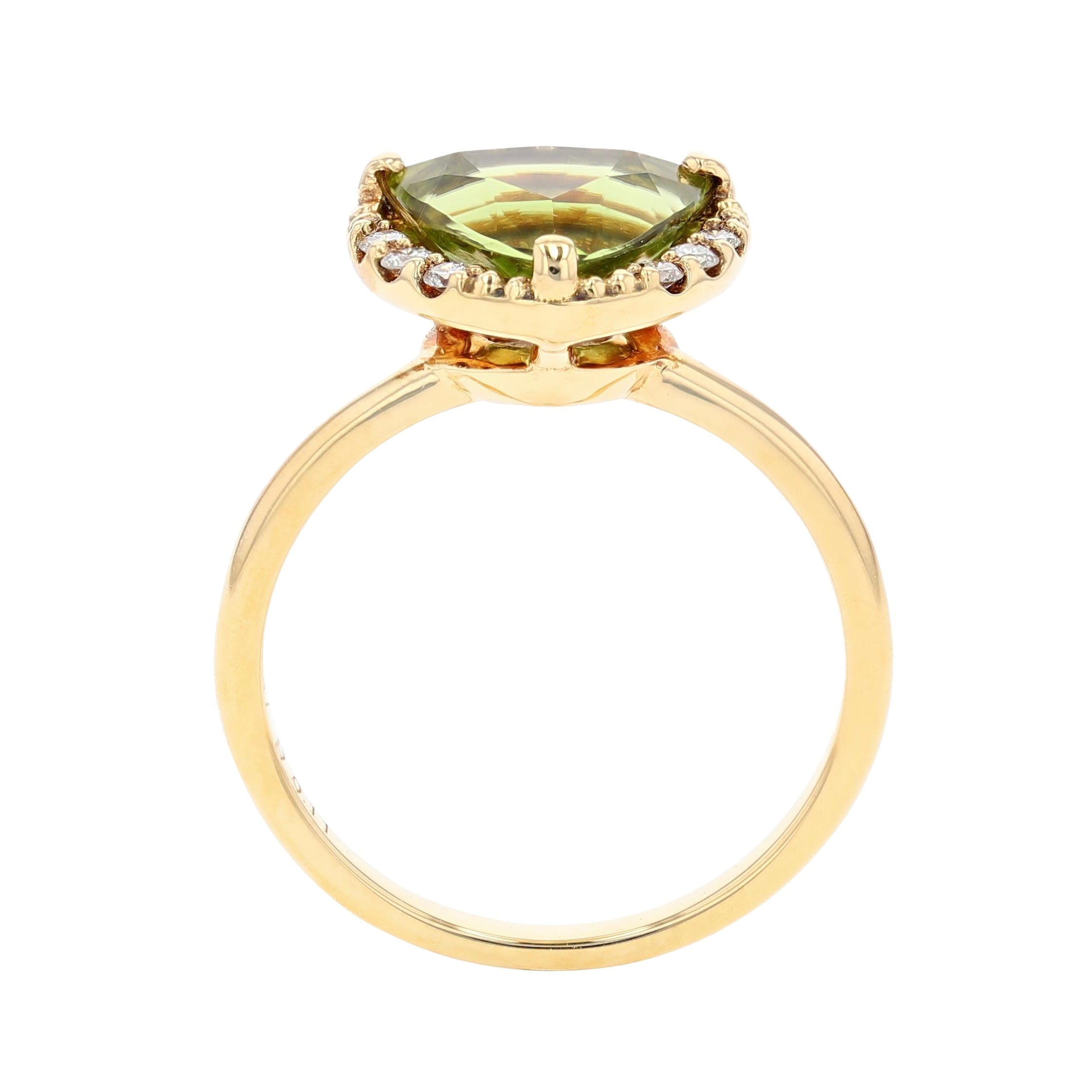ゴールドの光沢がペリドットの透明感と調和し
